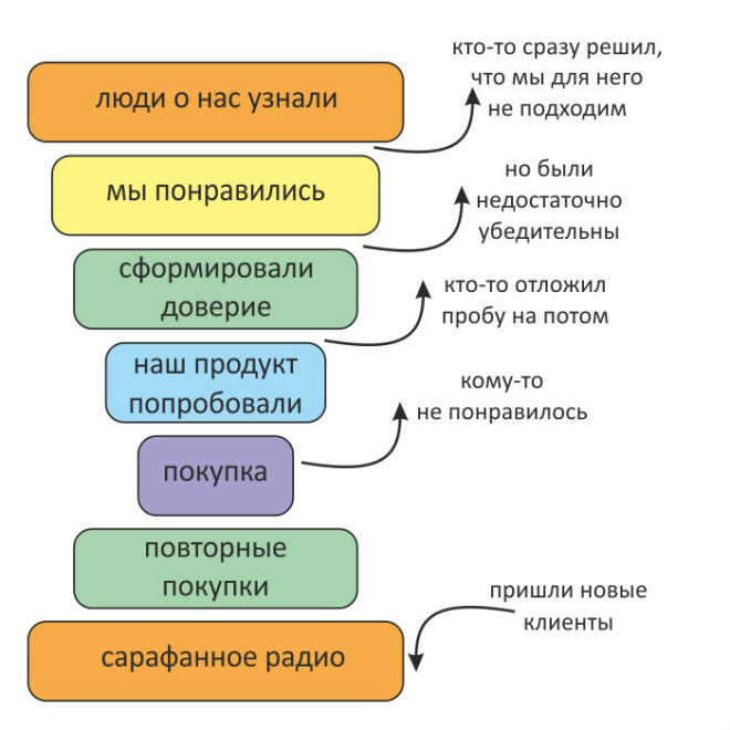 Что же такое воронка продаж? Это система маркетинга. Это то, каким образом вы превращаете посетителя вашего сайта из потенциального покупателя в реального покупателя, а затем и в постоянного.